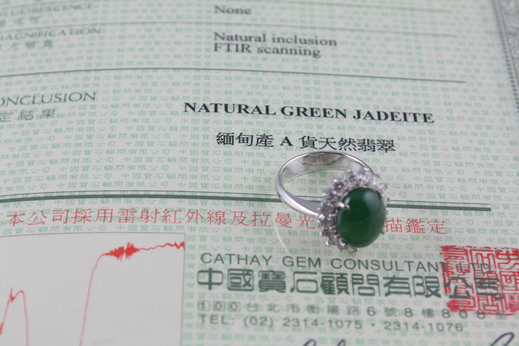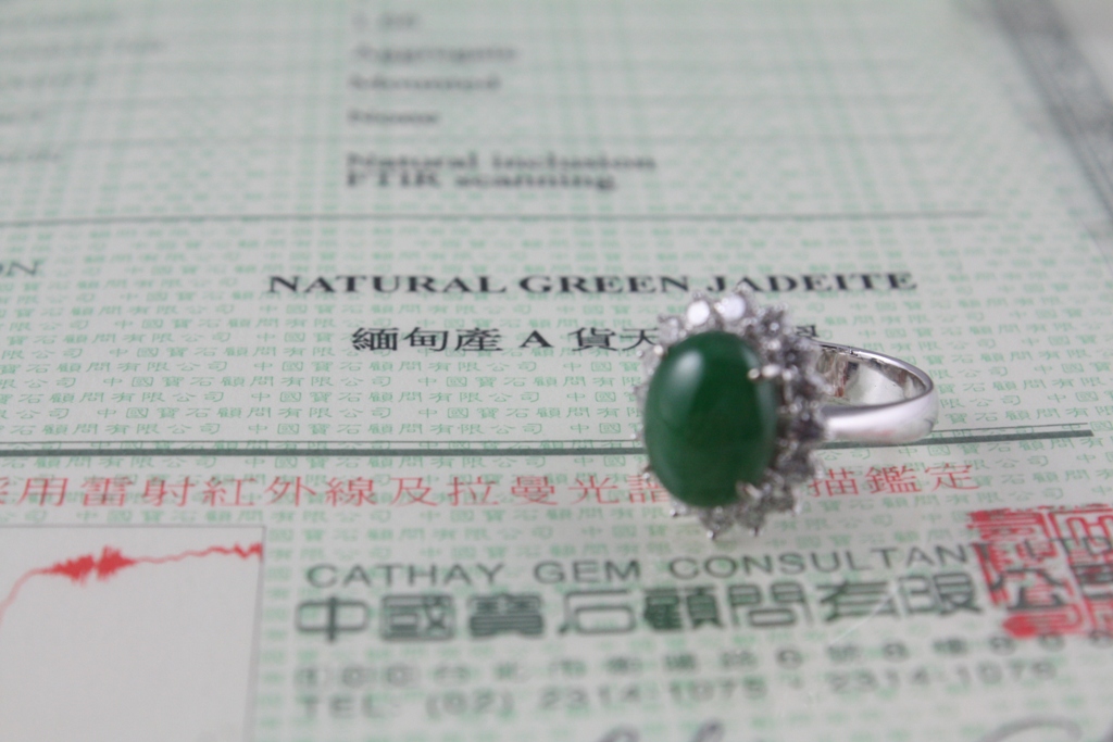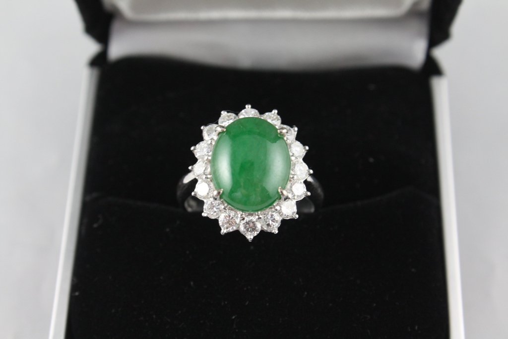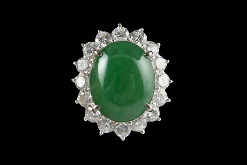 商品名稱:翡翠蛋面鑽石戒指 商品材質:K金