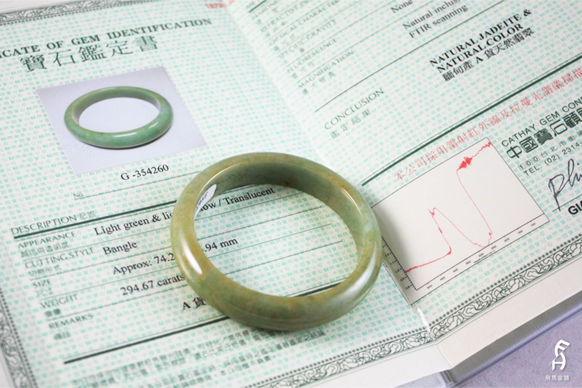 翡翠玉鐲A貨 附中國寶石協會證書 354260 (D237)