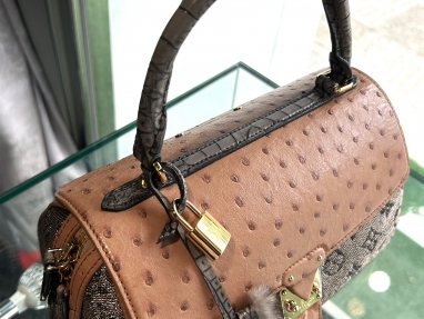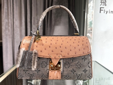Louis Vuitton LV N90924 Speedy系列 特殊隱藏版 鱷魚皮提把 駝鳥皮上蓋 金色Monogram緹花布 9成5新